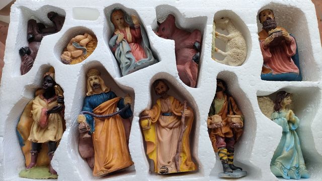 10 figuras de pesebre entre 9 y 11 cm. antiguas en su caja original