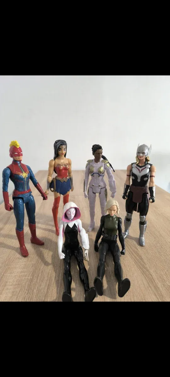 Detalles del productoColección de figuras de acción de superhéroinas.