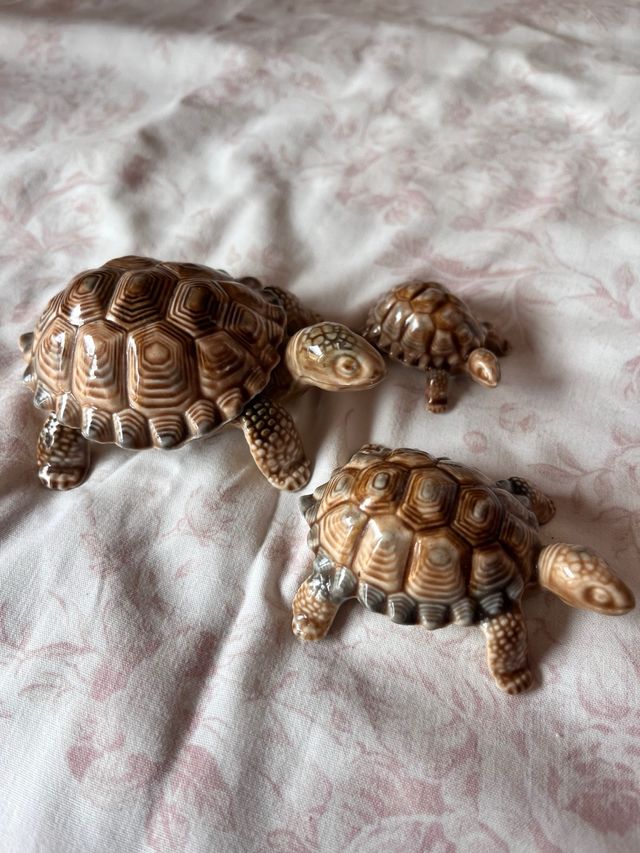 Detalles del productoConjunto de tres figuras decorativas de tortugas.