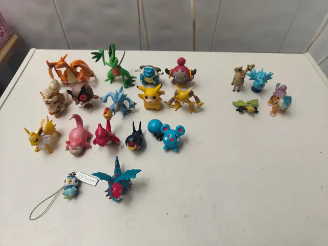 Lote de figuras pokemon, los de la izquierda son Tomy (53€) y los de la derecha son Tomy Bootleg (60€ con las normales). Preguntar disponibilidad y precios individuales.