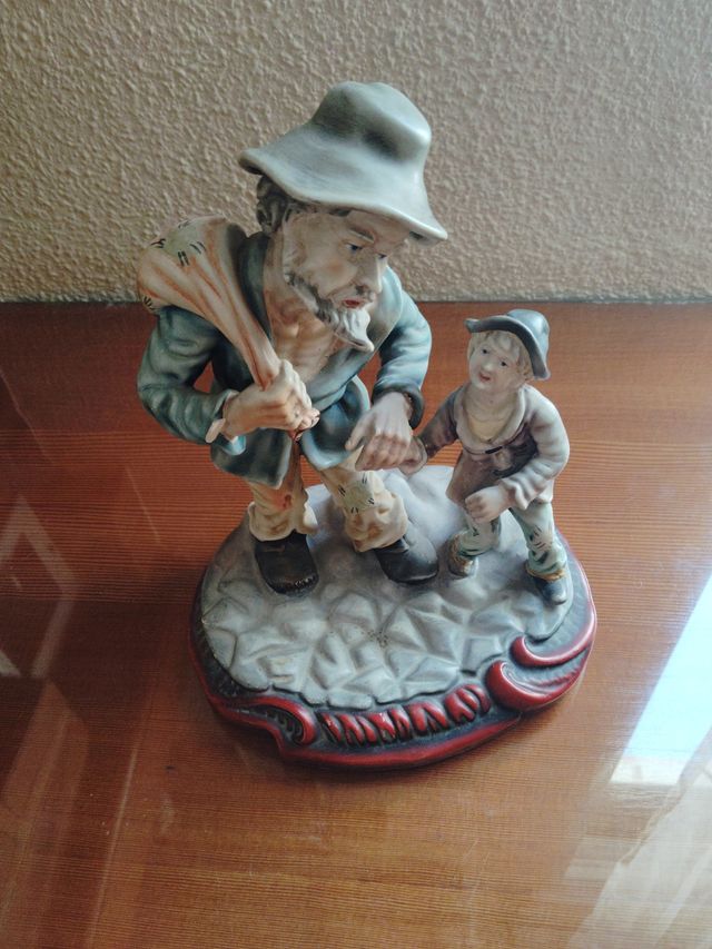 Detalles del productoPreciosa figurita de porcelana hecha a mano, que representa a un hombre mayor con un niño. Es una pieza única y delicada.