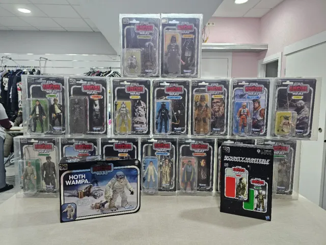 Detalles del productoVendo la colección completa de la colección 40th anniversary ESB en sus cajas sin abrir y cada figura en una caja protectora de plastico. Figuras en perfectas condiciones.