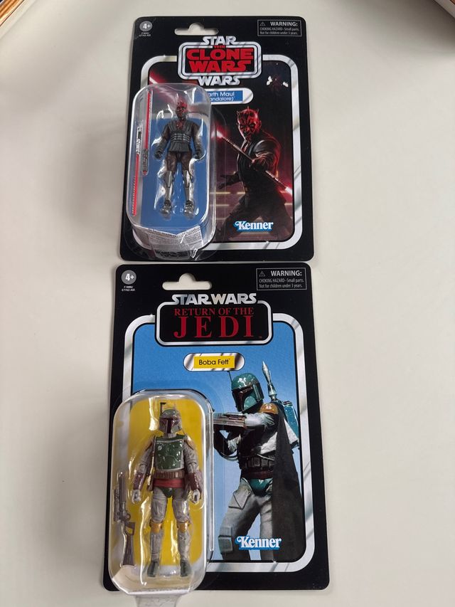 Detalles del productoColección de figuras de Star Wars de la marca Kenner. Incluye a Darth Maul de La Guerra de los Clones y a Boba Fett de El Retorno del Jedi.