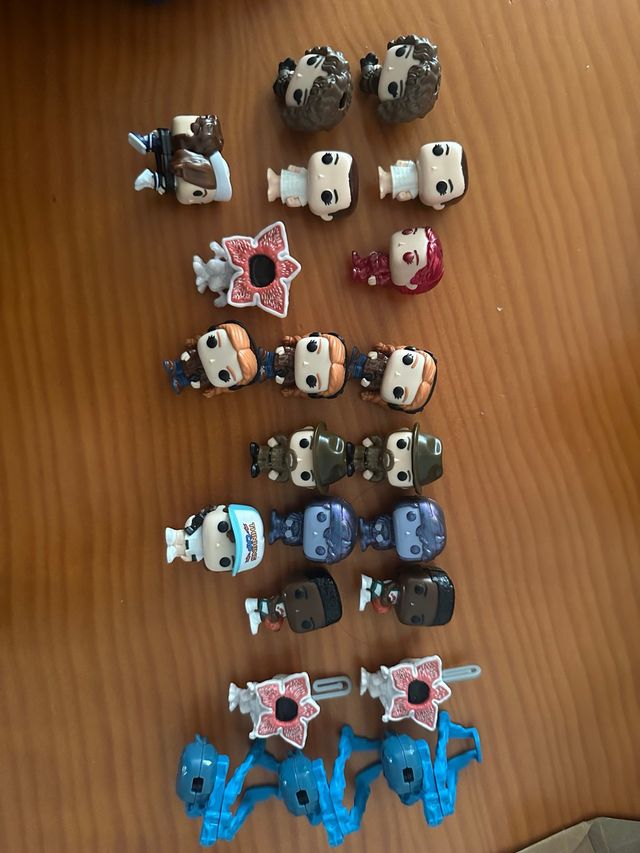 Colección de figuras de Stranger Things de Kinder Joy. Incluye varios personajes y accesorios. Cambio por: - Will del revés - Hopper del revés