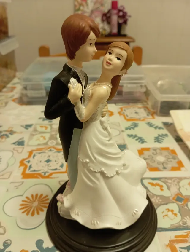 Detalles del productoPreciosa figurita de una pareja de novios bailando, ideal para decorar tartas de boda.