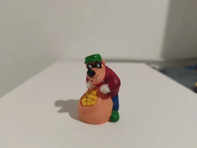Pequeña figurita de un golfo apandador con un saco de monedas. - Diseño detallado. - Colores vivos.