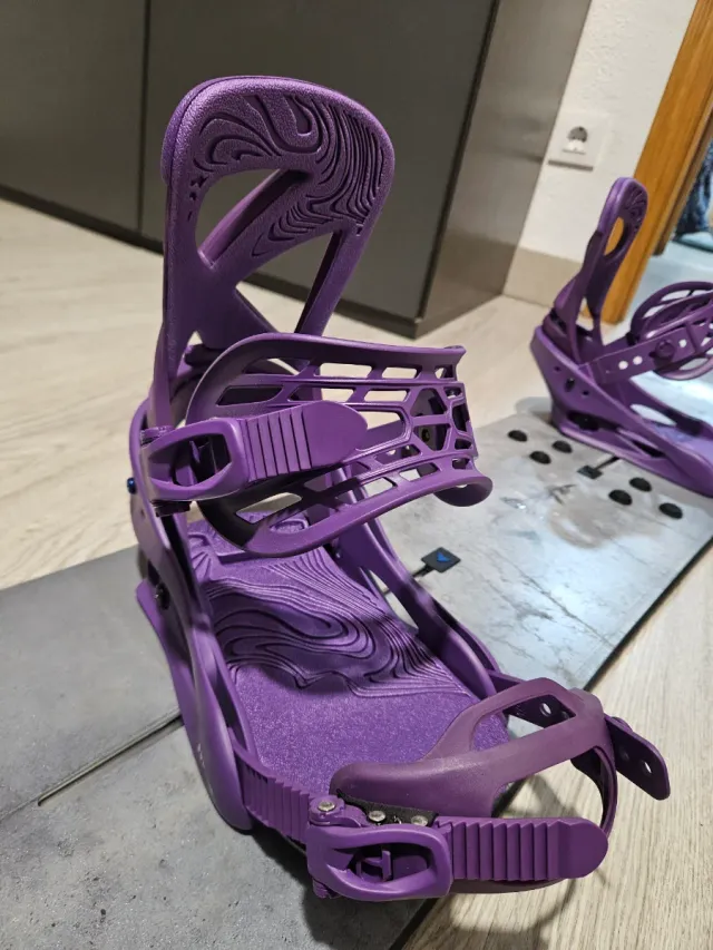 Fijaciones Burton Scribe Imperial Purple talla M. No se han usado nunca, he montado la tabla y al probar mis botas no entran bien, son pequeñas para mí.
