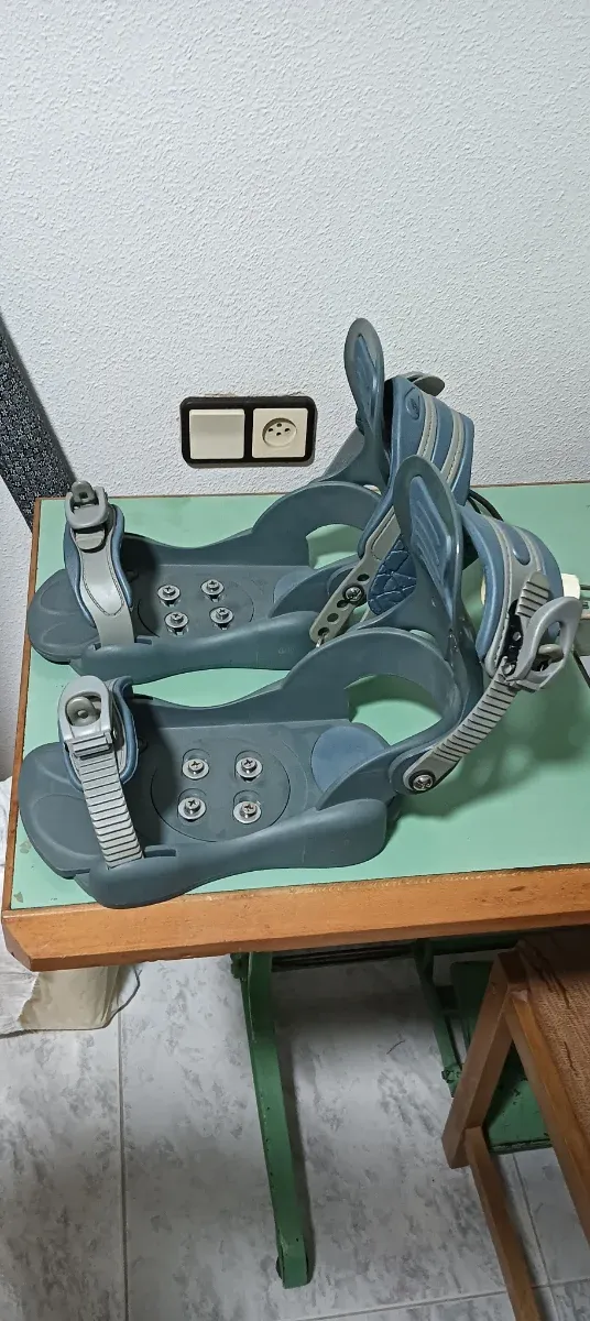 Par de fijaciones de snowboard en color gris y azul. Marca: crazycreek Talla 41-44 - Diseño ergonómico. - Correas ajustables. - Base sólida.