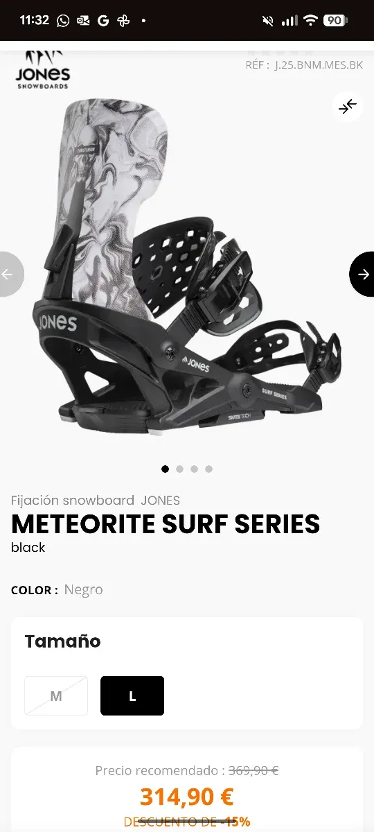 Detalles del productoFijaciones de snowboard Jones Meteorite Surf Series en talla L. Edición especial diseño chris christenson. snow.