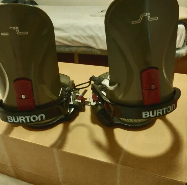 Detalles del productoPar de fijaciones de snowboard de la marca Burton.