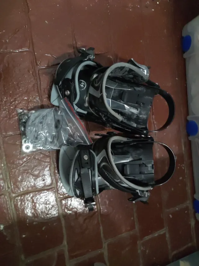 Detalles del productoFijaciones de snowboard, ideales para piezas de repuesto o para reparar. Se podrian utilizar, pero la correa va muy dura... Mejor porner correas nuevas. Son Quechua talla L