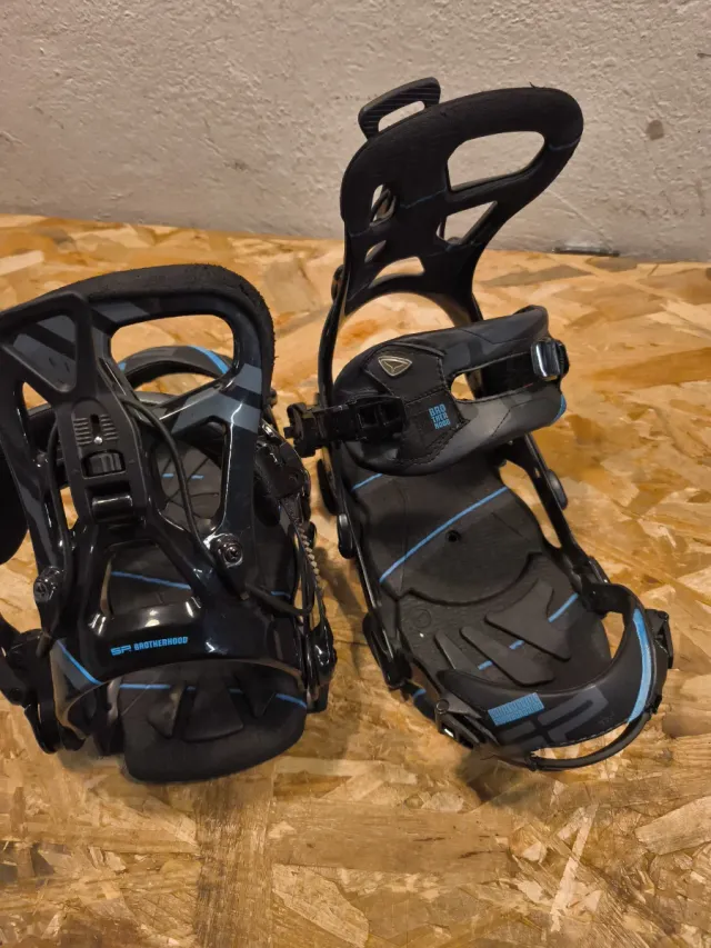 Detalles del productoFijaciones de snowboard SP Brotherhood en color negro con detalles en azul. Talla L a partir del 43'5.