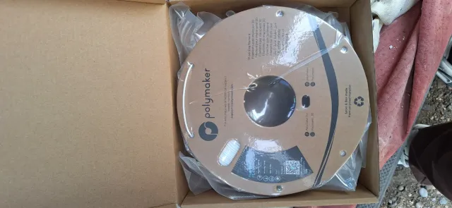 Rollo de filamento Polymaker para impresión 3D. El carrete y la caja están hechos de material reciclado. - Color: Blanco - Material: PLA