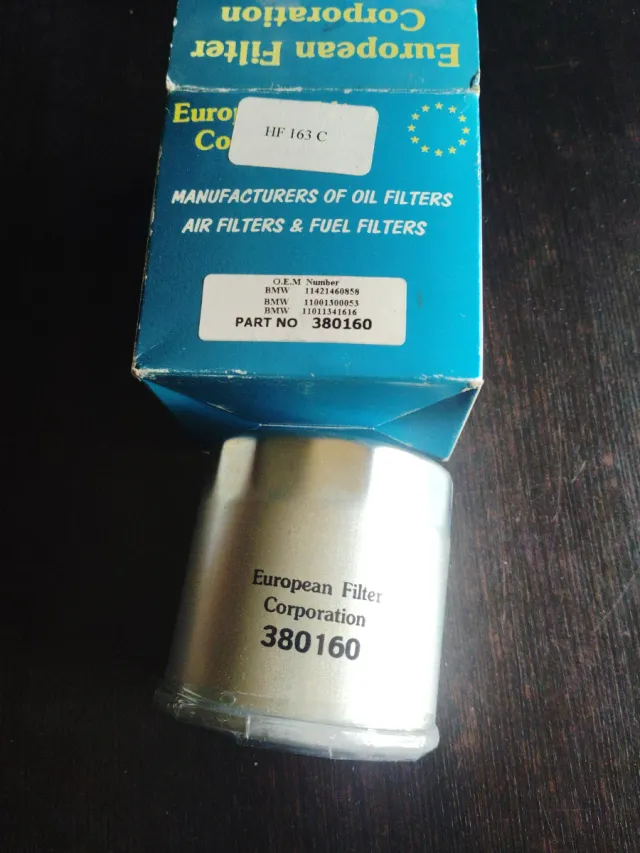 Detalles del productoFiltro de aceite de la marca European Filter Corporation, referencia 380160.