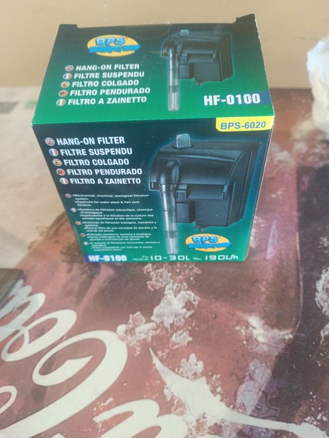 Detalles del productoFiltro de cascada pequeño para acuarios de hasta 30 l. Perfecto para poner en acuarios de crias. Se vende por no usar. Medidas del producto