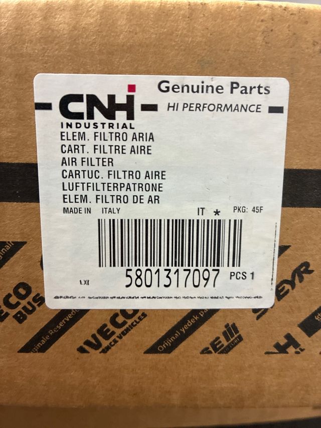 Filtro de aire CNH Industrial para vehículos Iveco. - Número de pieza: 5801317097 - Fabricado en Italia - Tipo: Elemento de filtro de aire