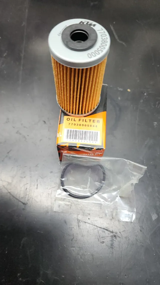 Detalles del productoFiltro original de aceite motor para moto KTM EXCF: REF: 77038005044. Con su junta tórica original.