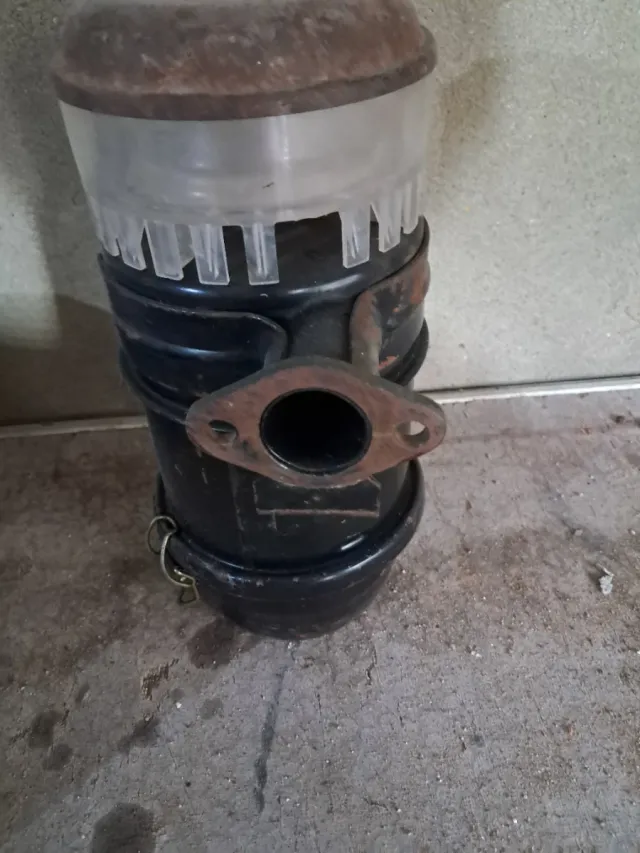 Filtro de aire para motor Lombardini. Pieza de recambio. - Carcasa metálica negra. - Conexión con brida. - Parte superior con protección de plástico.