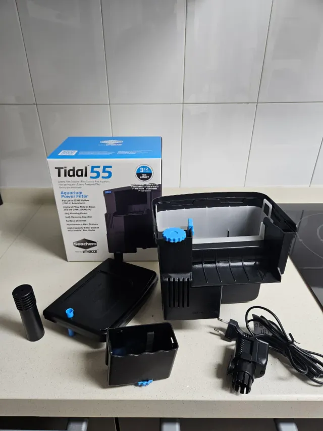 Detalles del productoFiltro de potencia para acuarios Tidal 55 de Seachem. Diseñado para acuarios de hasta 200 L.En garantia, comprado en septiembre.