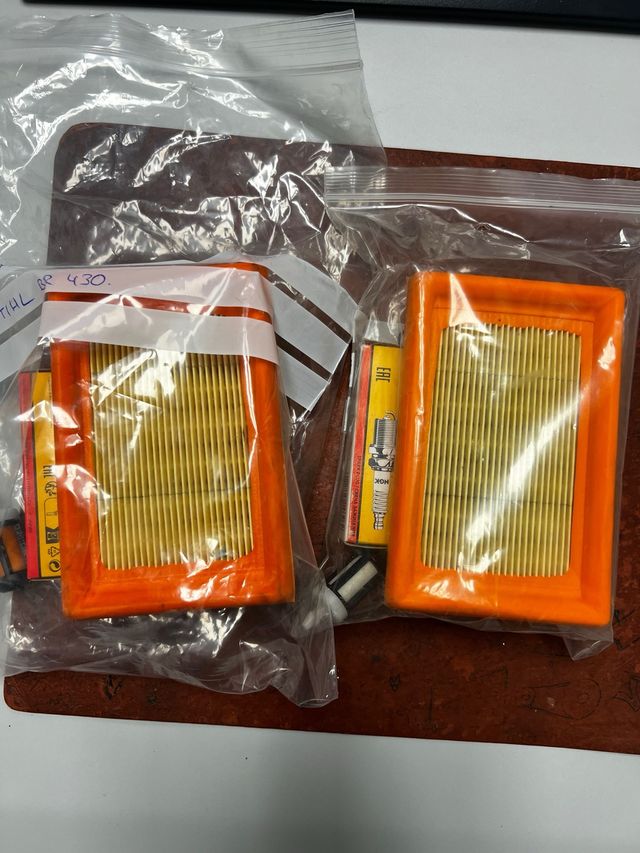 Detalles del productoSe venden 2 filtros de aire, 2 filtros de gasolina y 2 bujías NGK para soplador Stihl BP 430.