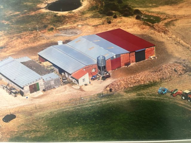 800 m² de establos y almacén, con instalación para bebederos y alumbrado. Silo para pienso.