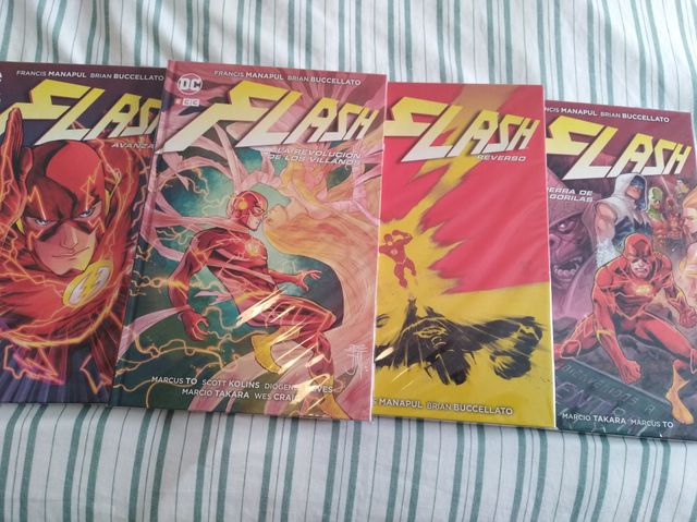 Los 4 tomos en tapa dura de la etapa de Flash a cargo de Manapul y Buccellato. Rebajados un 50%. Hago envíos y también trato en mano en Algeciras.