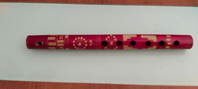 Detalles del productoFlauta artesanal de madera, pintada a mano. Es una pieza única y decorativa.