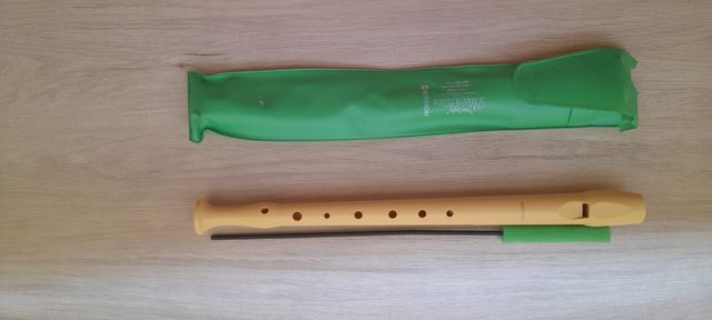 Flauta dulce en perfecto estado, contiene funda y limpiador. La funda esta rota y desgastada. La flauta está impoluta.