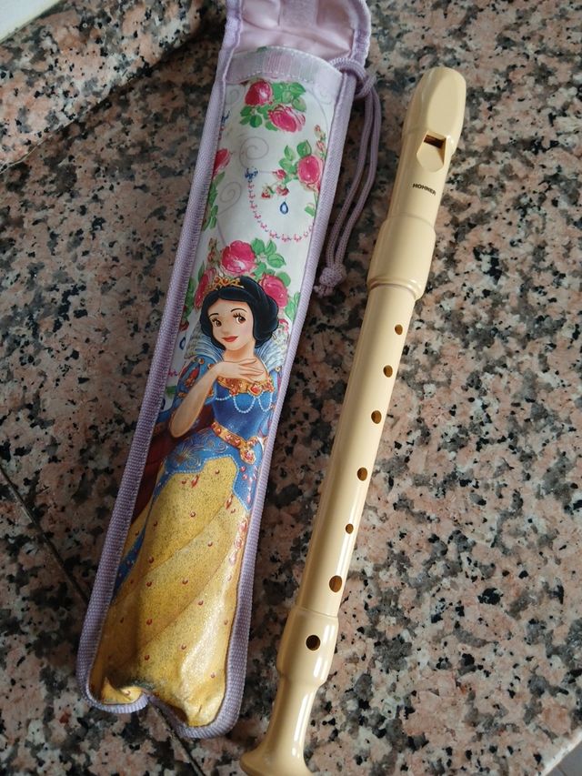 Detalles del productoFlauta dulce infantil en color beige, en perfecto estado. Incluye una funda con estampado de Blancanieves. Ideal para principiantes. - Flauta dulce de plástico. - Funda acolchada con diseño. - Perfecto estado de conservación.