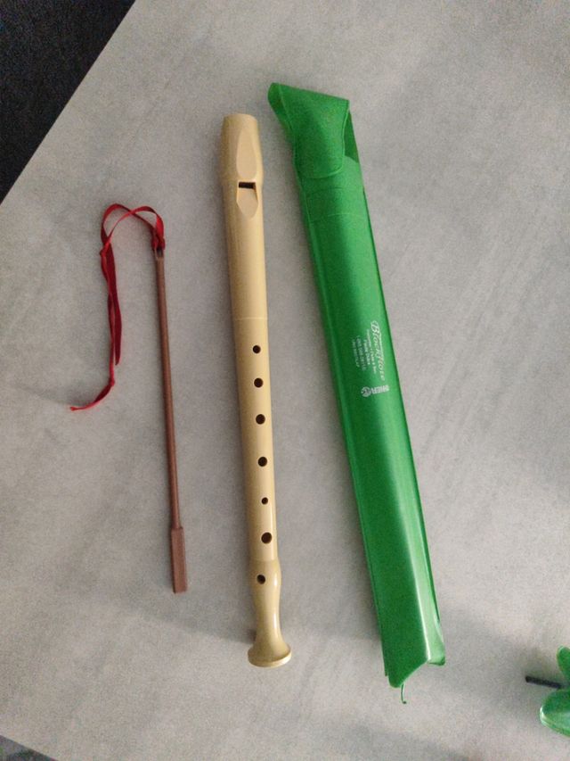 Flauta escolar de color beige, ideal para iniciarse en la música. Viene con su funda protectora. - Incluye funda verde. - Incluye varilla de limpieza.
