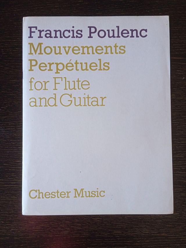 Flauta y Guitarra. Movimientos Perpetuos. Francis Poulenc. Ed. Chester Music. Sofisticadas, elegantes y muy coloridas.