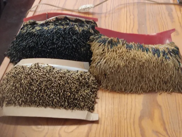 Se venden flecos de cristal en piezas de 10 metros. Ideales para manualidades y decoración. - Color negro y dorado. - Color dorado y azul.