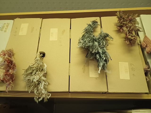 Flecos de lana y algodón con un acabado rizado, perfectos para tus proyectos de manualidades o decoración. - Material: Lana y algodón. - Precio: 2€ por metro.