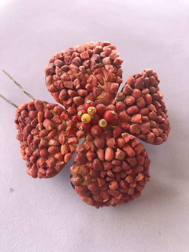 Flor para tocado en base de carey y adornos en piedra de color coral. Completamente hecha a mano. Peinecillo de metal para fácil colocación. Muy útil para ceremonias y fiestas