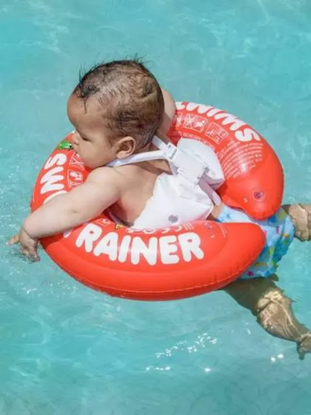 Detalles del productoFlotador para bebés de la marca Swim Trainer, diseñado para ayudar en el aprendizaje de la natación.