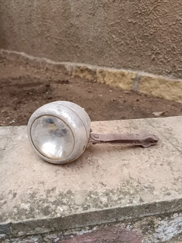 Foco frontal de bicicleta antiguo, fabricado en metal. Un accesorio clásico para bicicletas. - Diseño redondo. - Soporte de montaje incluido.