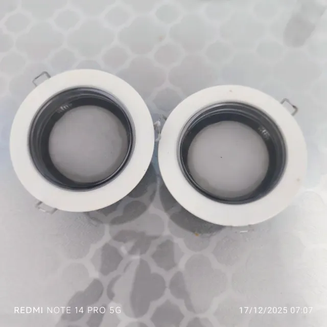 Detalles del productoDos focos empotrables redondos de color blanco.