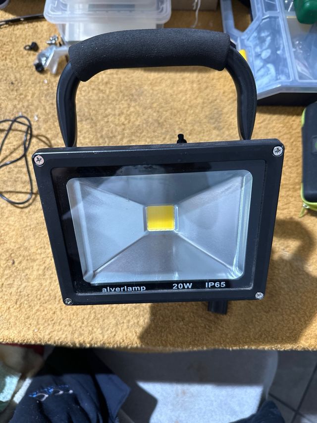 foco halogeno de trabajo con bateria , con cargador se puede llevar a cualquier sitio , buen tamaño y buena luz