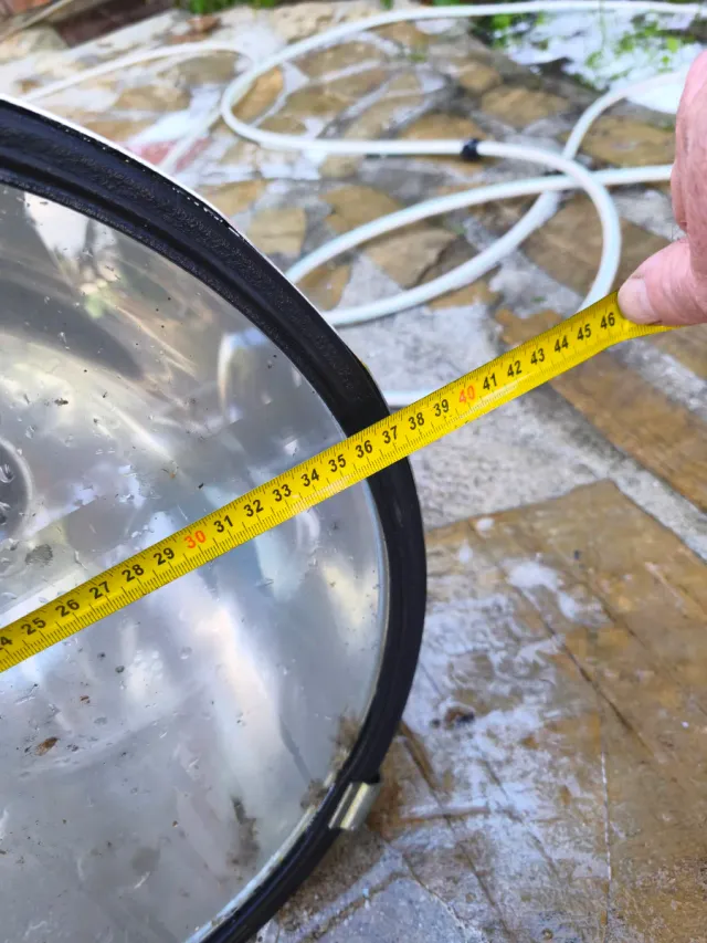 Foco industrial de gran tamaño con acabado metálico reflectante. Ideal para espacios amplios. - Diámetro aproximado de 45 cm.
