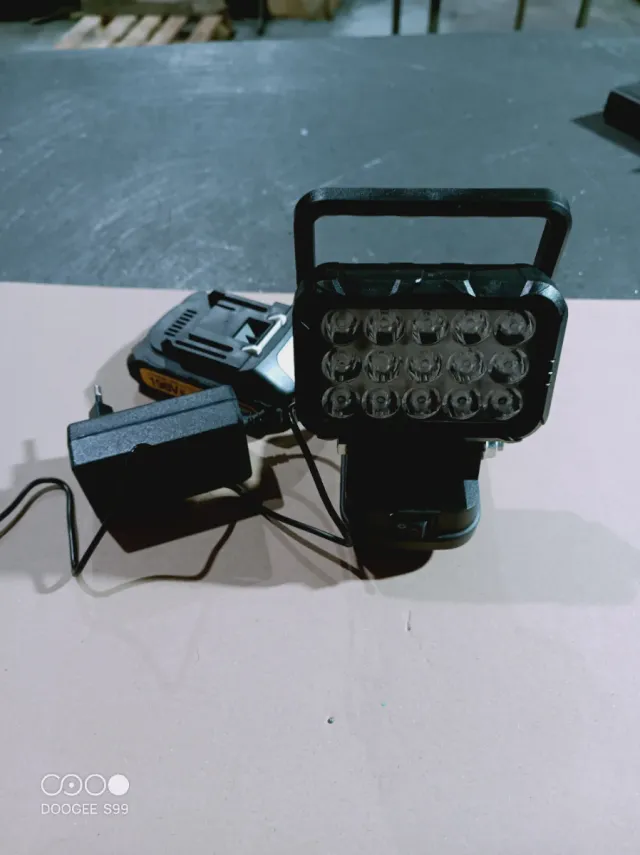 Detalles del productoFoco LED portátil con batería y cargador compatible con Makita 18V. Ideal para iluminar espacios de trabajo o exteriores.