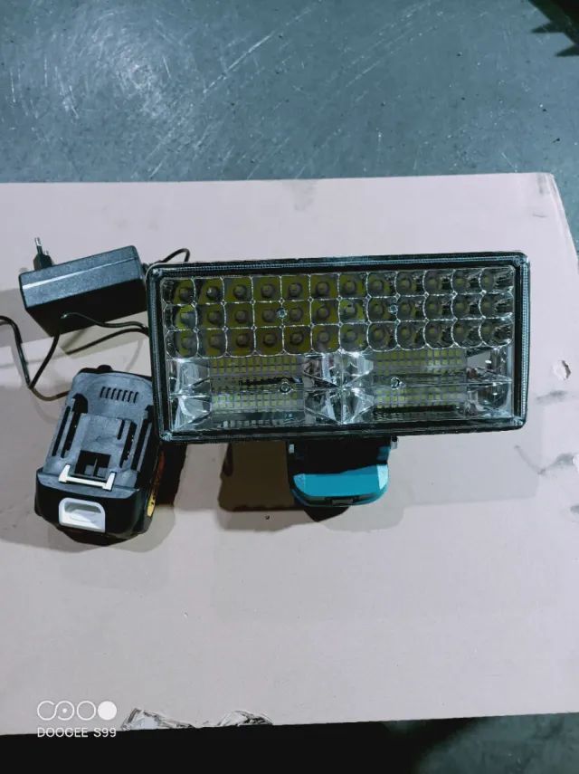 Detalles del productoFoco LED portátil con batería y cargador compatible con Makita 18V. Ideal para iluminar espacios de trabajo o exteriores.