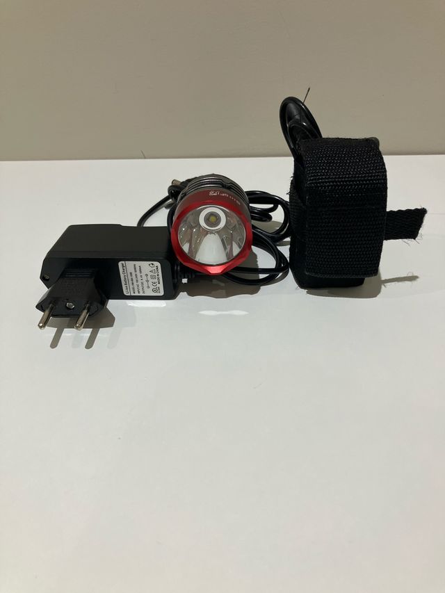 Foco Sing Fire con cargador powerbank Li-ion Battery Charger modelo: HM-084-1000 input 100-240 50/60Hz output: DC 8.4V 1000mA