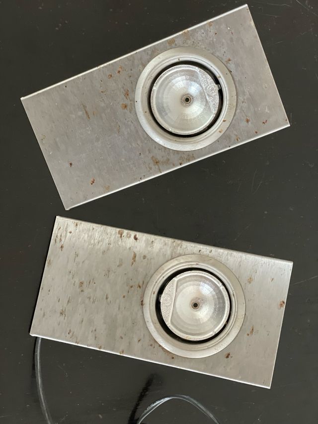 Detalles del producto2 focos para bombillas de 12V tipo G4 max 20w. se venden con el soporte inox en escuadra para instalar bajo mueble en angulo.