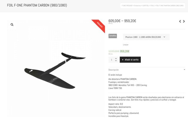 Detalles del productoSe vende foil F-One Phantom 1080, ideal para surfear y WING FOIL.