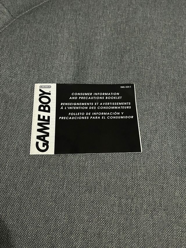 Detalles del productoFolleto de información y precauciones para la consola Game Boy clásica.