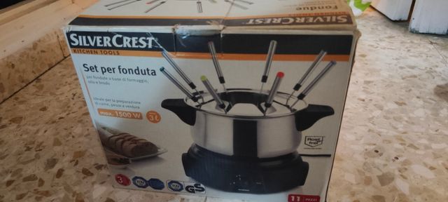 Detalles del productoFondue eléctrico SilverCrest, ideal para preparar fondues de queso, carnes, pescados y verduras. Potencia máxima de 1500 W.