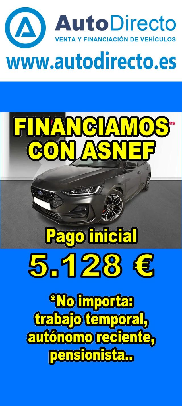 Detalles del producto¿No consigues financiación? ¡Tenemos la solución! *************************************************************************** RENT CREDIT: Aprobamos más del 90% de las operaciones. No importa ASNEF o RAI, impagos pendientes, ser autónomo o empresa reciente, ser pensionista. Imprescindible pago inicial del 20%. Ejemplo de operación: FORD FOCUS 1.0 ECOBOOST 125CV MHEV ST LINE X. Ref. W958710MYX - Precio vehículo financiado: 25640 €. - Pago inicial de 5128 €. - Cuota mes desde 532 €. - Impuesto de circulación y garantía (mínimo 1 año) incluidos. *************************************************************************** ✅ Más de 3.000 COCHES Y FURGONETAS EN STOCK. ✅ HASTA 2 AÑOS DE GARANTIA. ✅ Kilómetros certificados. ✅ 17 concesionarios repartidos en toda España. ♻️ Aceptamos tu coche como parte del pago. *************************************************************************** IMPORTANTE: -. Este anuncio, no es vinculante, puede contener errores. SE MUESTRAN A TÍTULO INFORMATIVO Y NO CONTRACTUAL. -. Consultar disponibilidad del vehículo y datos exactos: fecha de matriculación, importes, etc,... *************************************************************************** Te ofrecemos distintas opciones: financiación, renting, alquiler con opción a compra, rent credit. En nuestro stock disponible encontraras: 3008 , qashqai , corolla , rav4 , sandero , Duster , yaris , 2008 , Tucson , Ibiza , 208 , Sportage , a3 , c4 , Formentor , q3 , yaris cross , 500 , c3 , arona , zs , x1 , kona , corsa , clase a , león , 308 , serie 1 , golf , focus , captur , a1 , tiguan , i20 , t roc , stonic , xc40 , civic , q5 , serie 3 , glb , 5008 , ateca , clio , kuga , c hr , i30 , arkana , juke , a4 , x3 , cx 5 , xc60 , kamiq , taigo , Mustang , x6 , polo , ceed , karoq , x2 , Astra , niro , cx 30 , a5 , cooper , megane , moka , fiesta , hs , q2 , clase c , serie 3 , renegade , picanto.