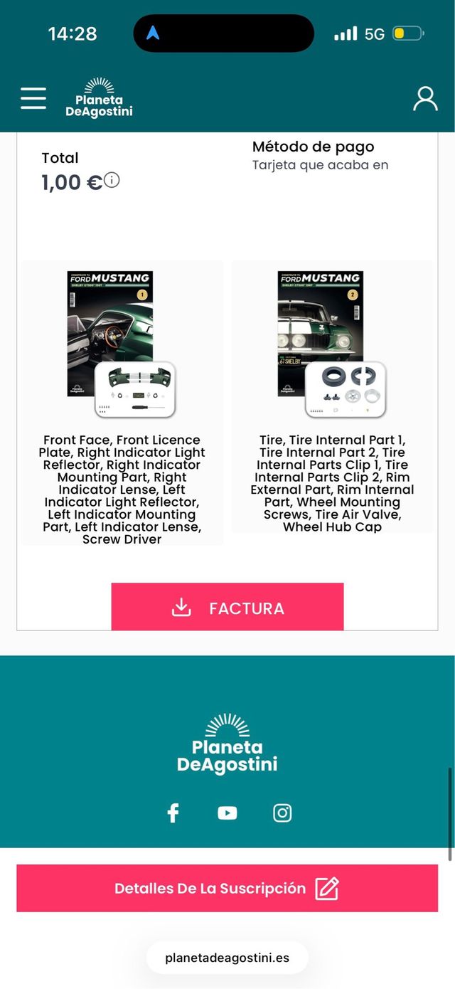 Detalles del productoSe venden los fascículos 1 y 2 de la colección Ford Mustang Shelby GT500 1967 de Planeta de Agostini
