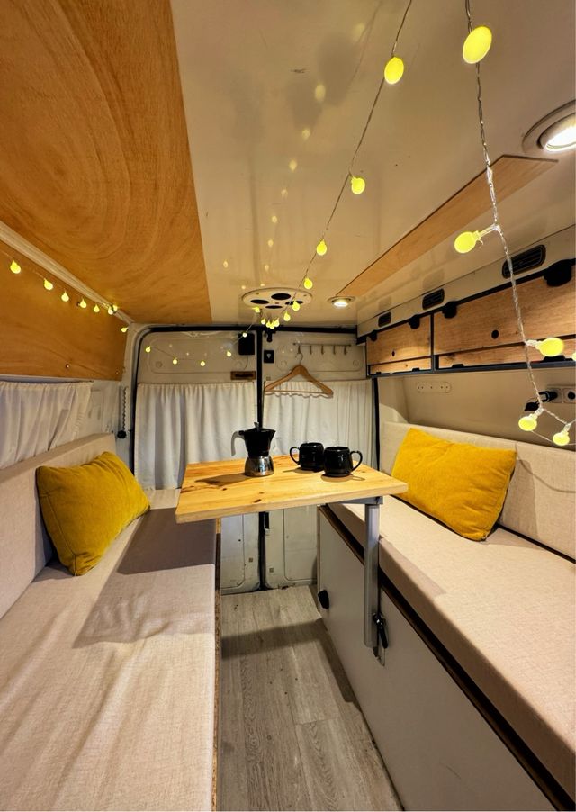 • Interior camperizado: Equipado con lo esencial para disfrutar de la vida en ruta, incluyendo cama, almacenaje optimizado y una pequeña cocina funcional.