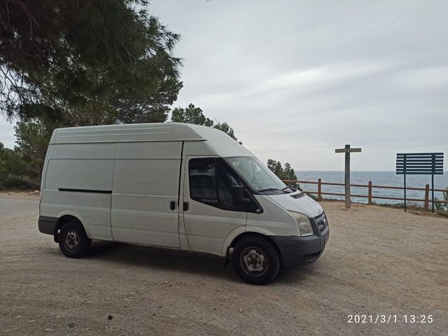 Furgoneta Ford Transit de gran capacidad de carga, caja de 3,3X1,7m y 1,95m de alto, 11 m3 cúbicos de capacidad. Furgoneta totalmente nueva mecánicamente, motor con 60.000km, kit de embrague con bimasa, inyectores y calentadores nuevos, radiador y manguitos, valvulina del cambio, turbo repasado, bomba de agua, bomba de dirección, neumáticos y frenos nuevos, tratamiento METALUBE, Ojo cuentakilómetros sustituido, tiene 300.000km pero marca 60.000km se sustituyó por uno de segunda mano que marcaba 5.000km, el motor tiene 65.000km reales. Factura de la reparación, motor reconstruido de primera marca. Ideal para camperizar, motor muy fiable y bajo consumo.